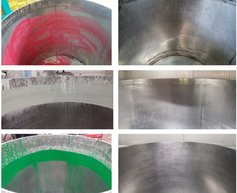The fully automatic brush cleaning equipment for the pull cylinder adopts a telescopic cleaning brush and combines solvent spraying to achieve thorough cleaning of the cylinder wall and the bottom of the cylinder. The spindle speed is adjustable and the cleaning depth is adjustable. It is suitable for cleaning the inside of the pull cylinder, automatically adjusting the clamping positioning according to the size of the cylinder body, and is compatible with cylinder bodies of different specifications with a diameter of 500-1100mm.